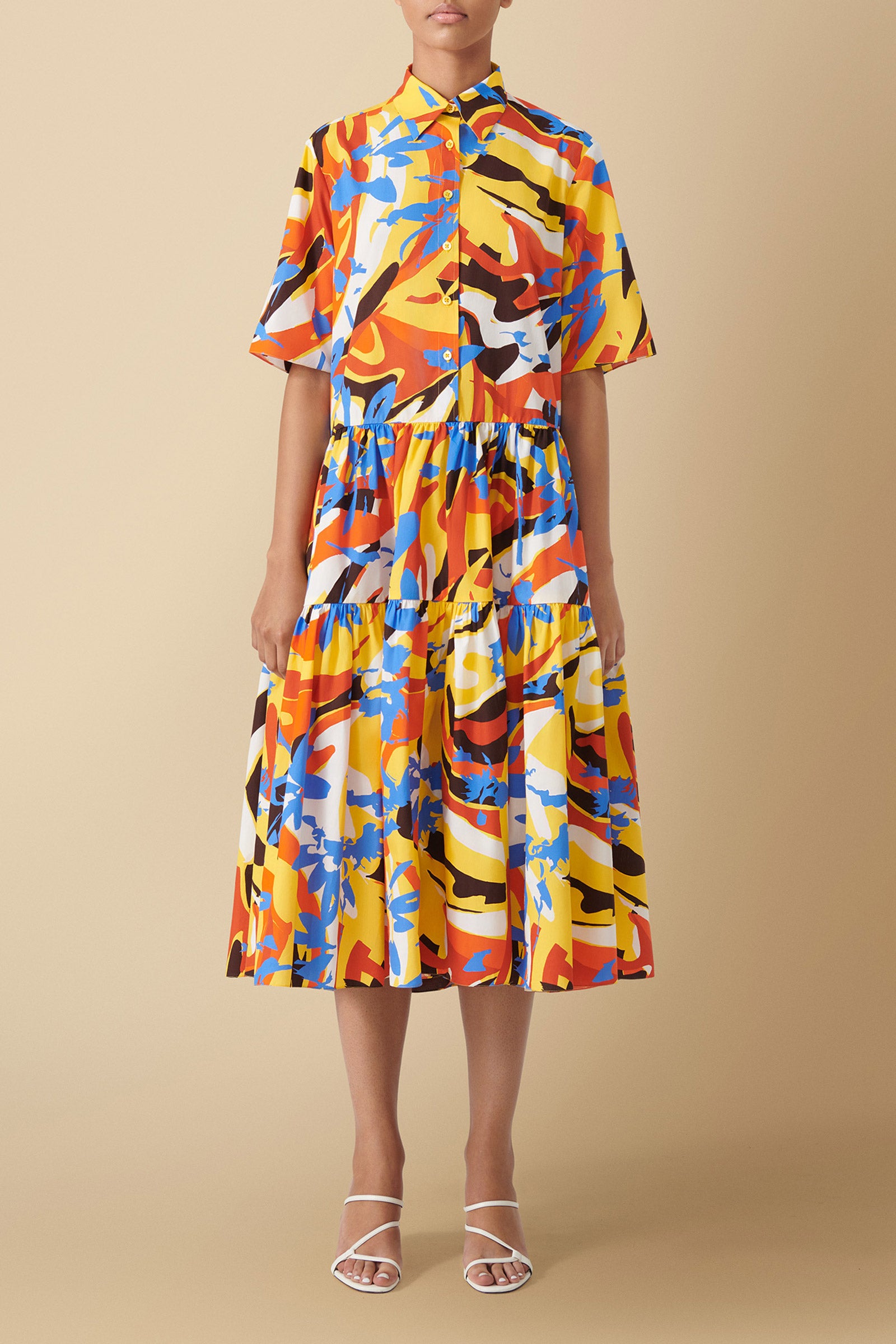 Nandi Geo-Floral Print Tiered Midi Dress Cotton Poplin