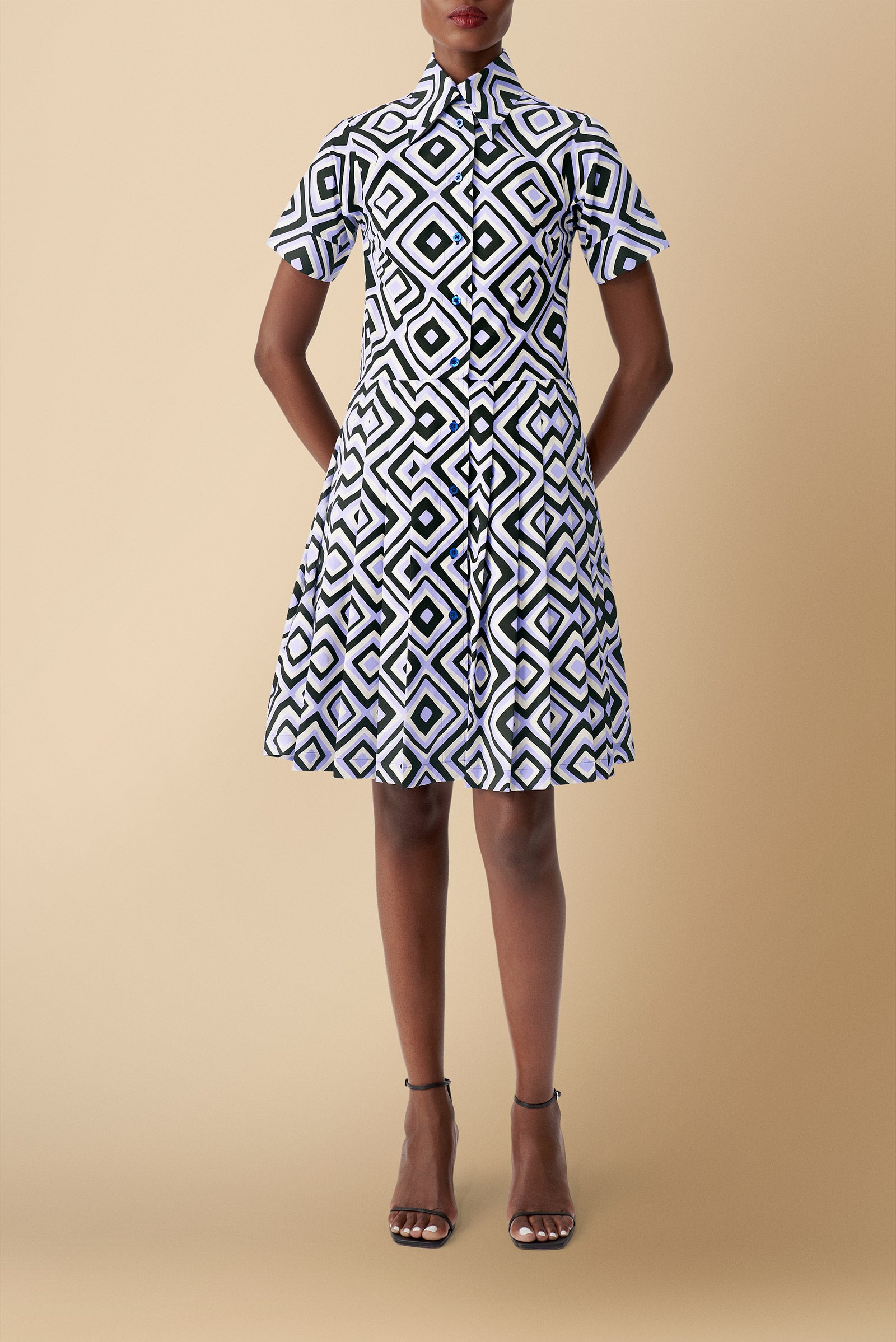 Pendo Geometric Cotton Poplin Shirtdress in Lilac