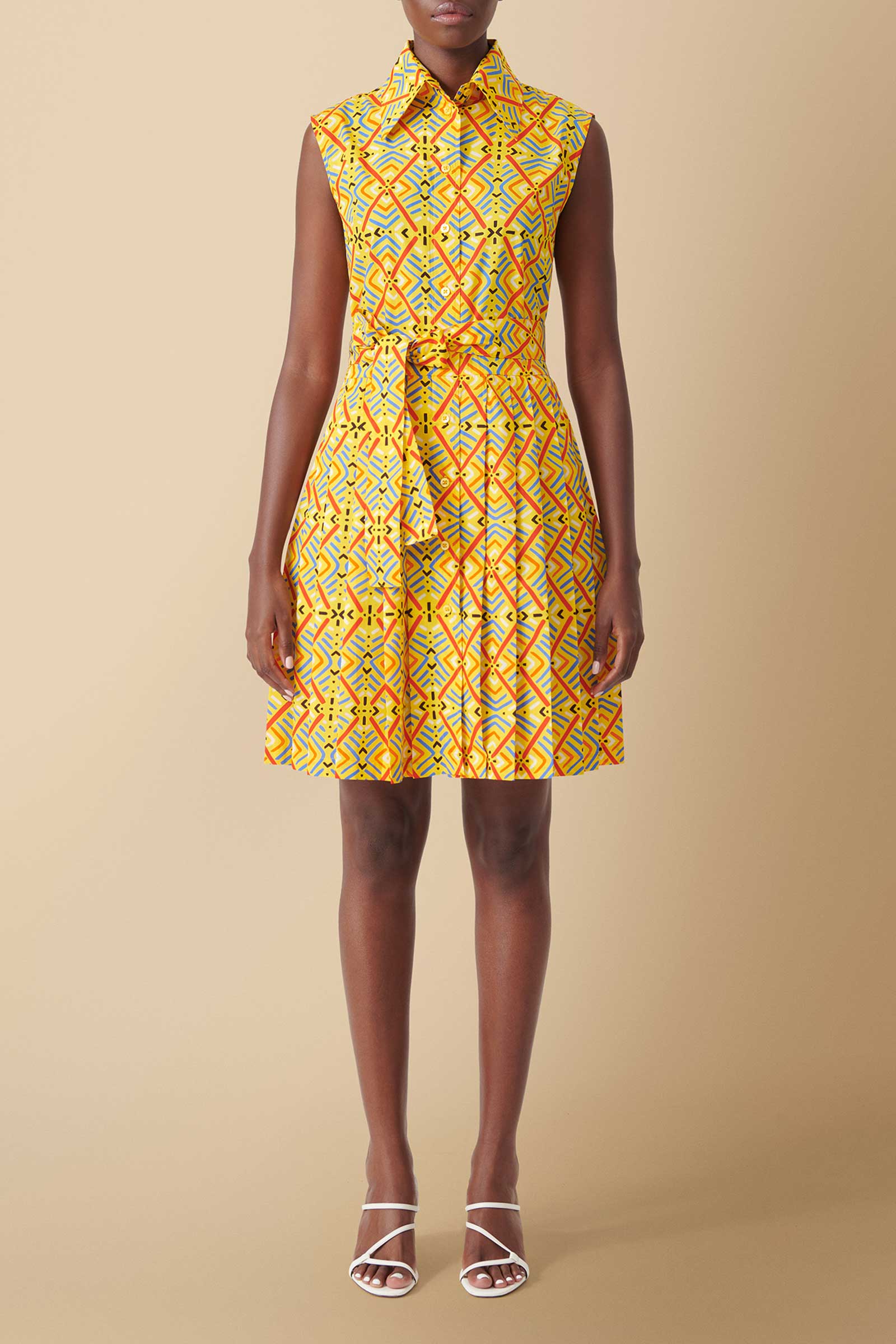 Shiro Geo-Print Sleeveless Yellow Shirtdress in Cotton Poplin