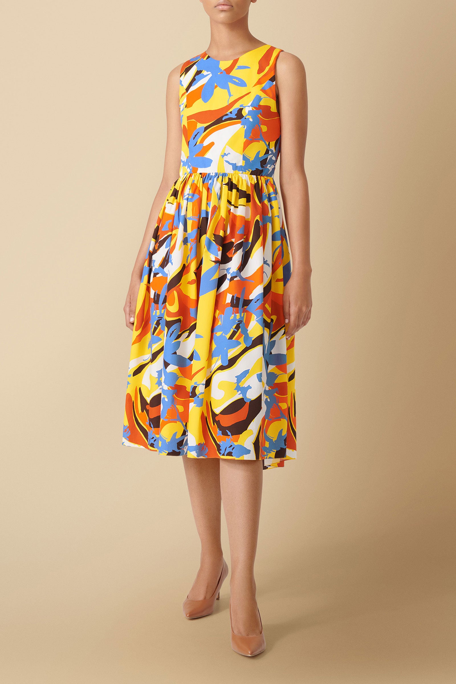 Kerubo Geo-Floral Print Open-Back Midi Dress in Yellow