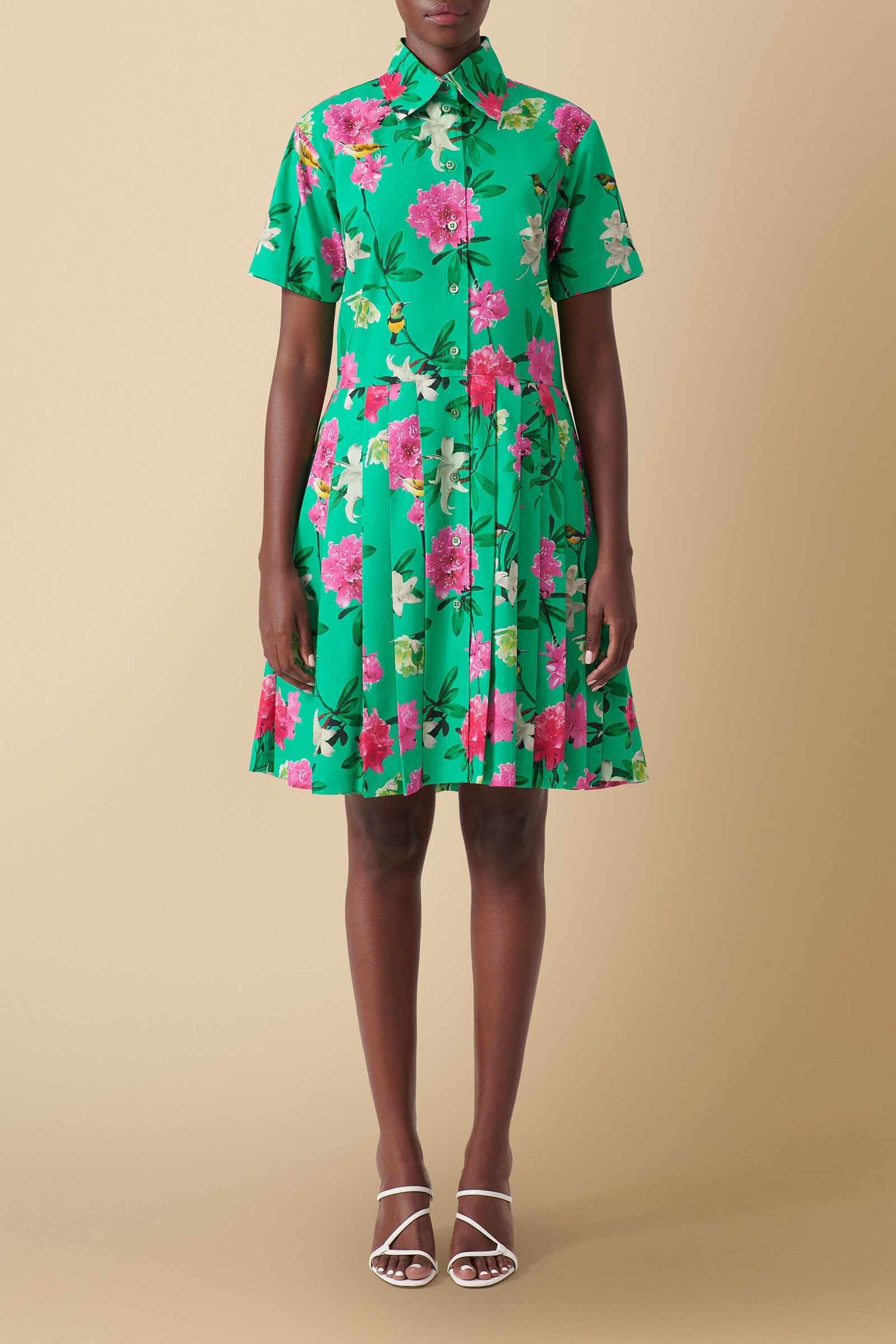 Pendo Floral Print Cotton Poplin Shirtdress in Green