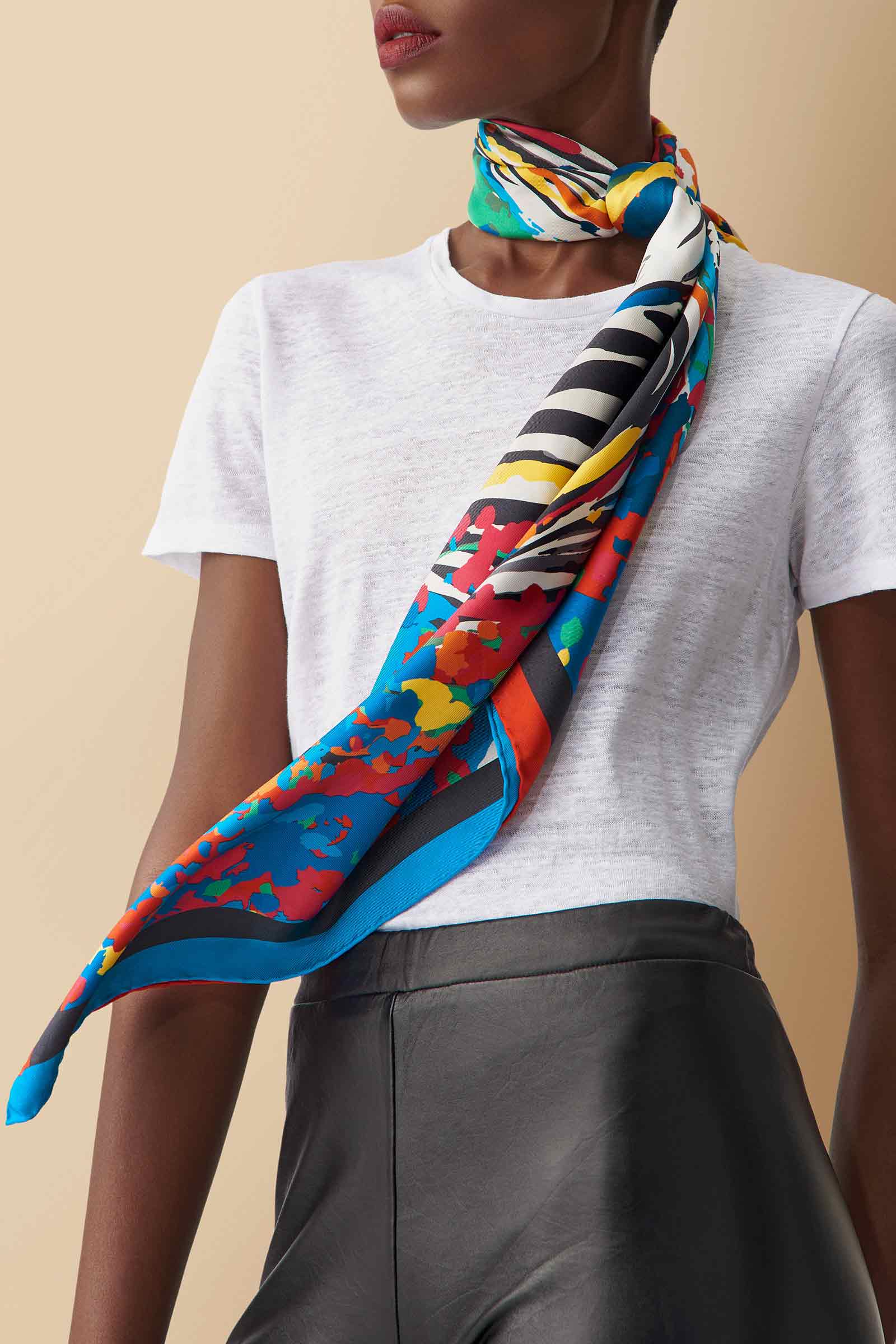 This silk twill scarf is an essential accessory that effortlessly complements any ensemble. Whether draped around your neck, worn as a chic top, tied at the waist, or styled as a fashionable headscarf, this versatile scarf embodies the spirit of creativity and self-expression.
